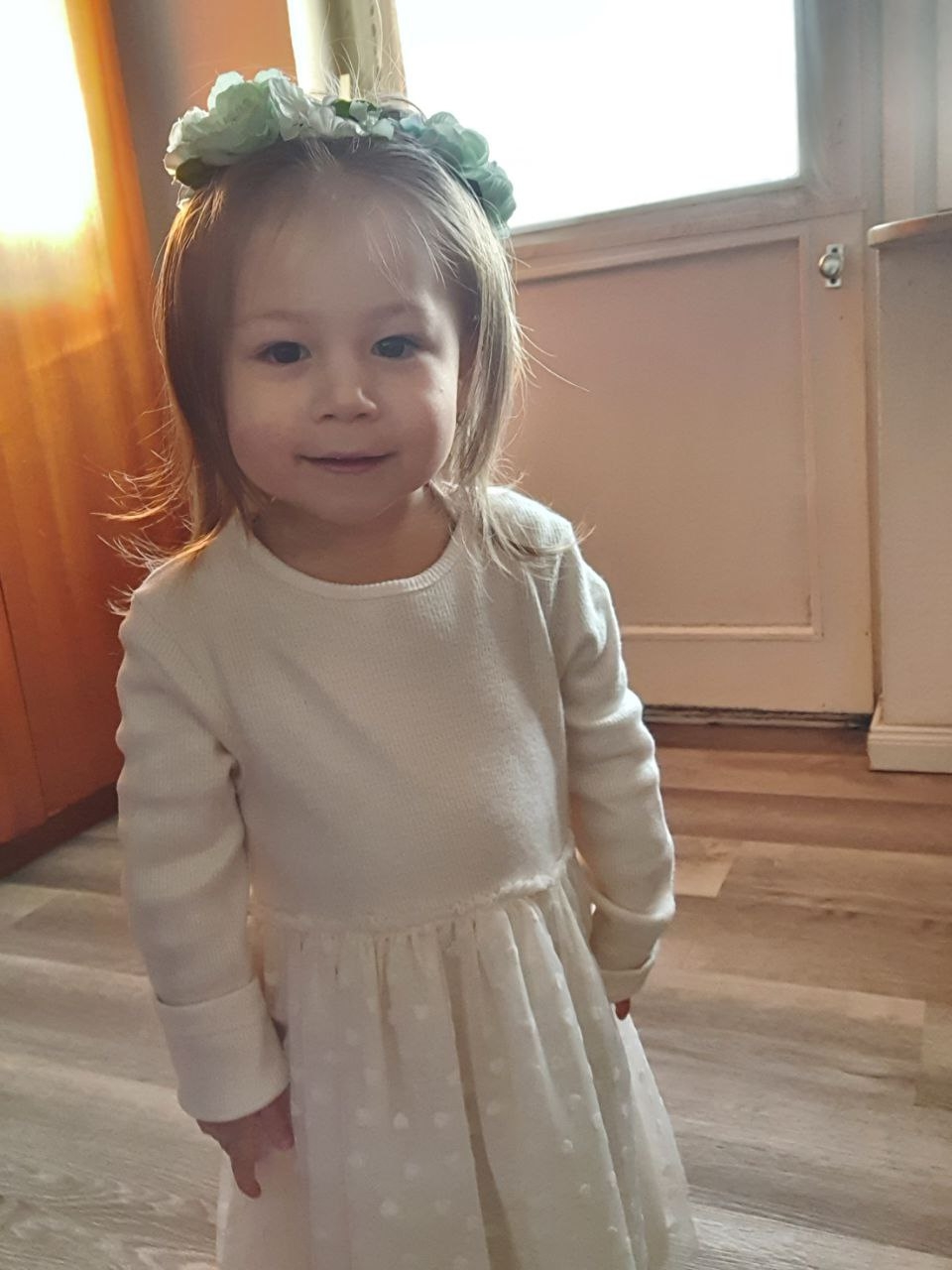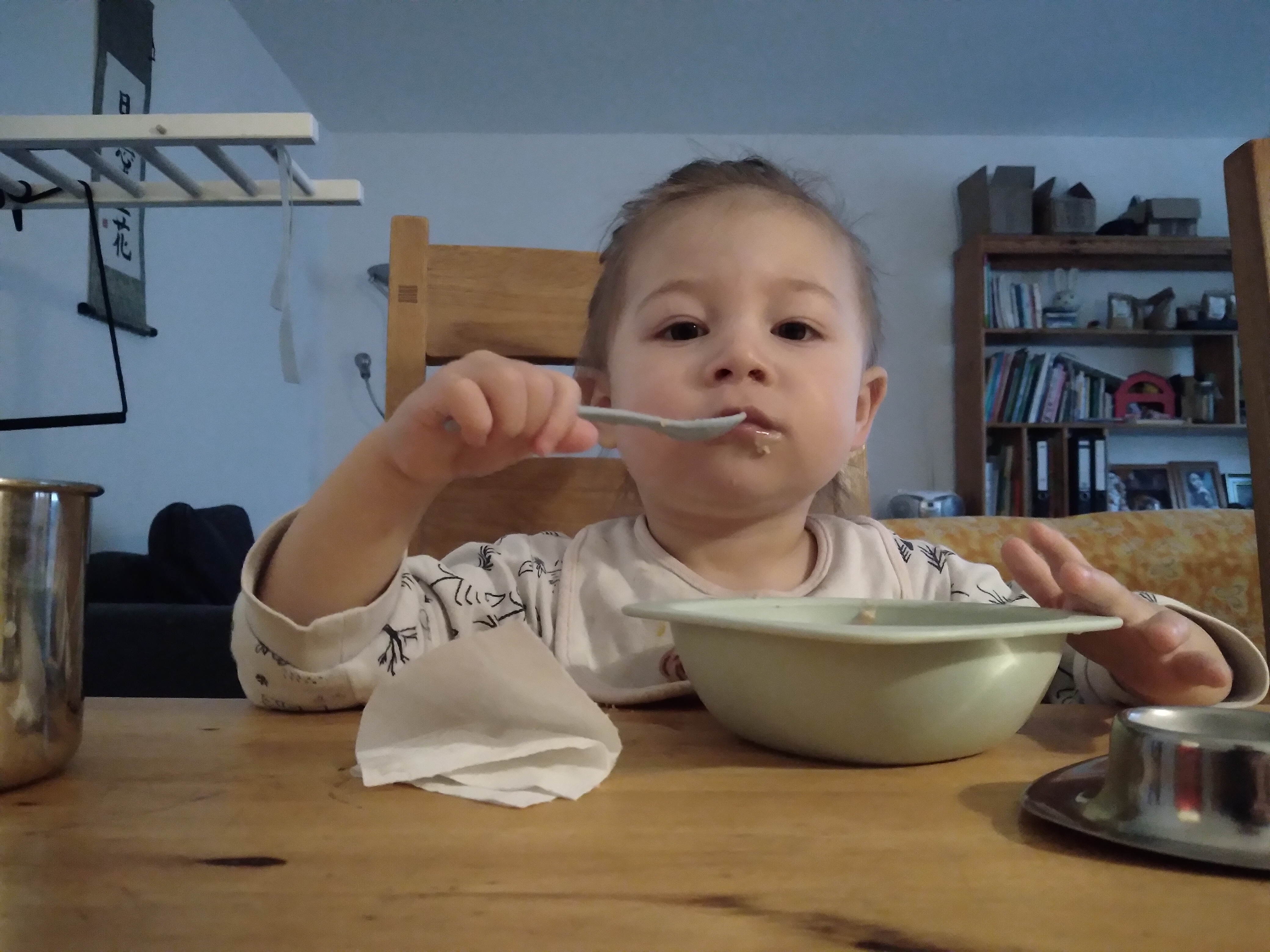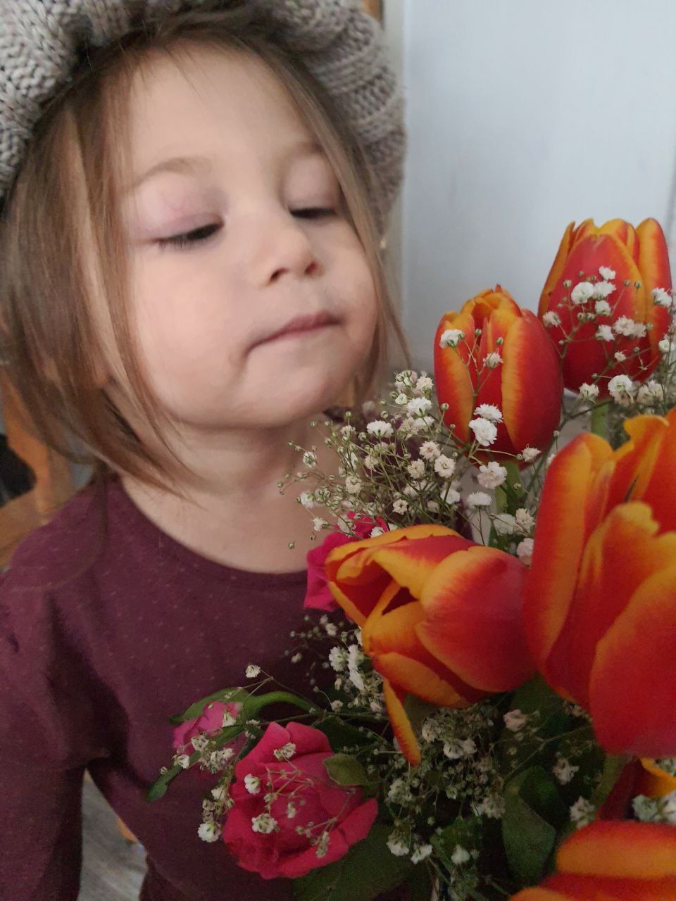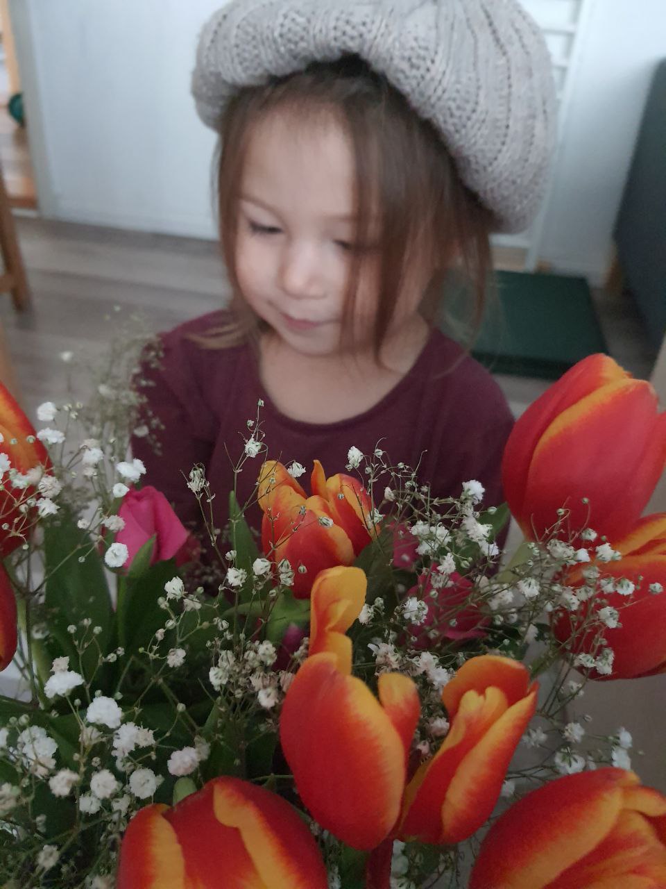 Sunflower gifted by Auntie Victoria, the waffle is homemade by Mom
