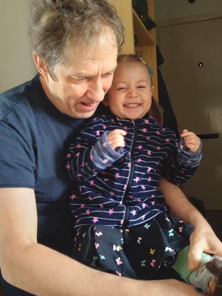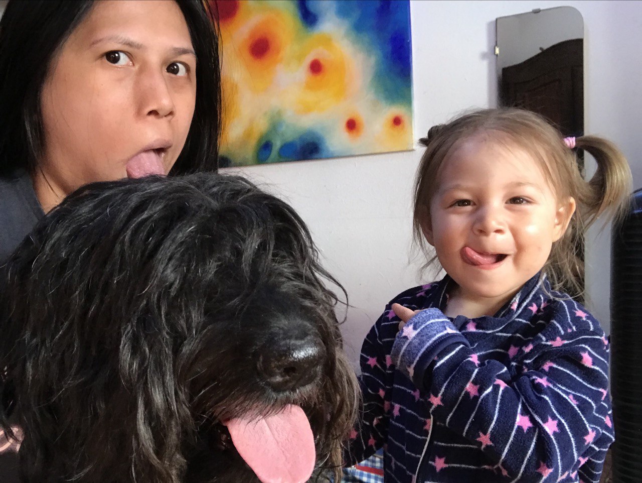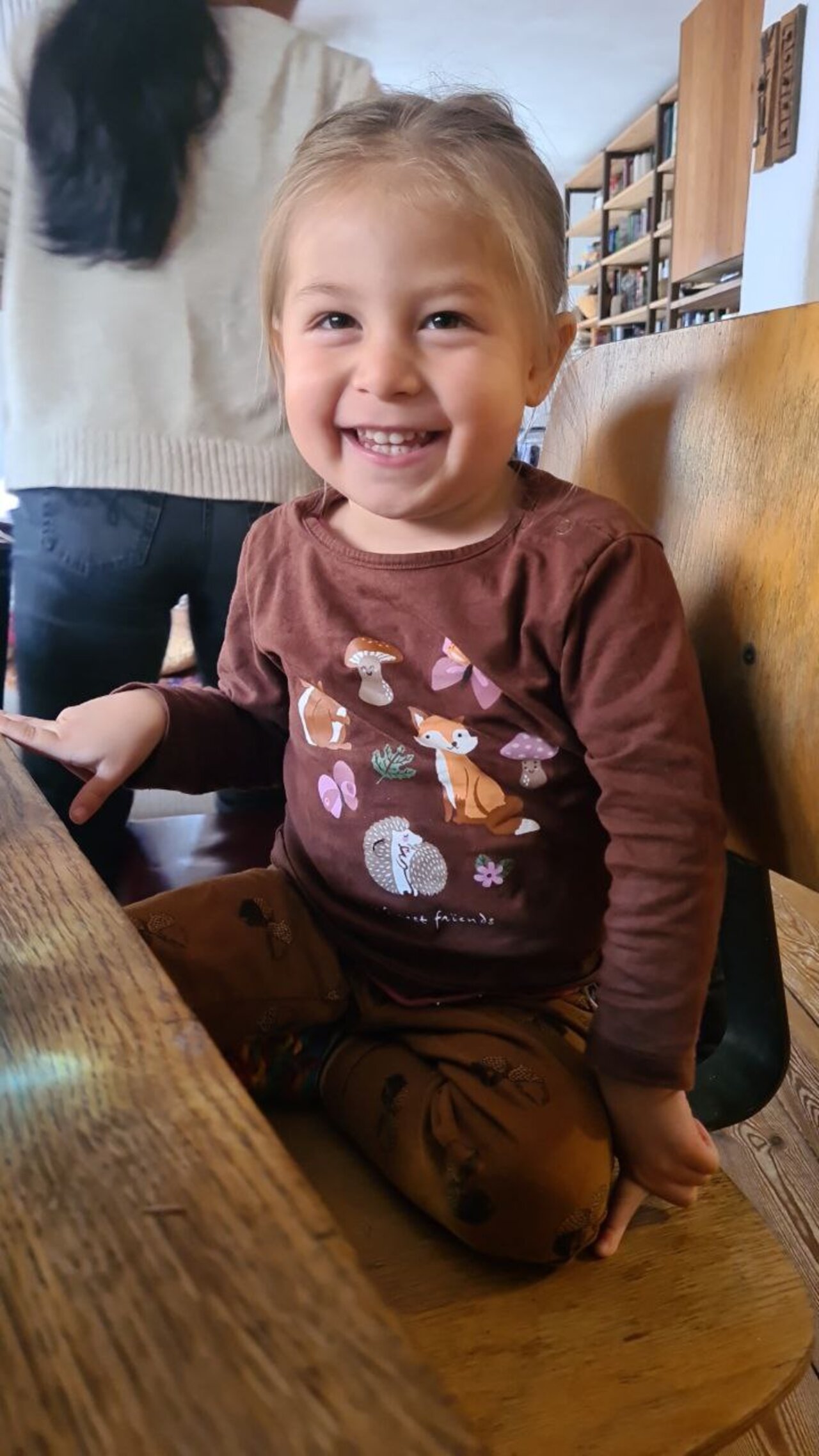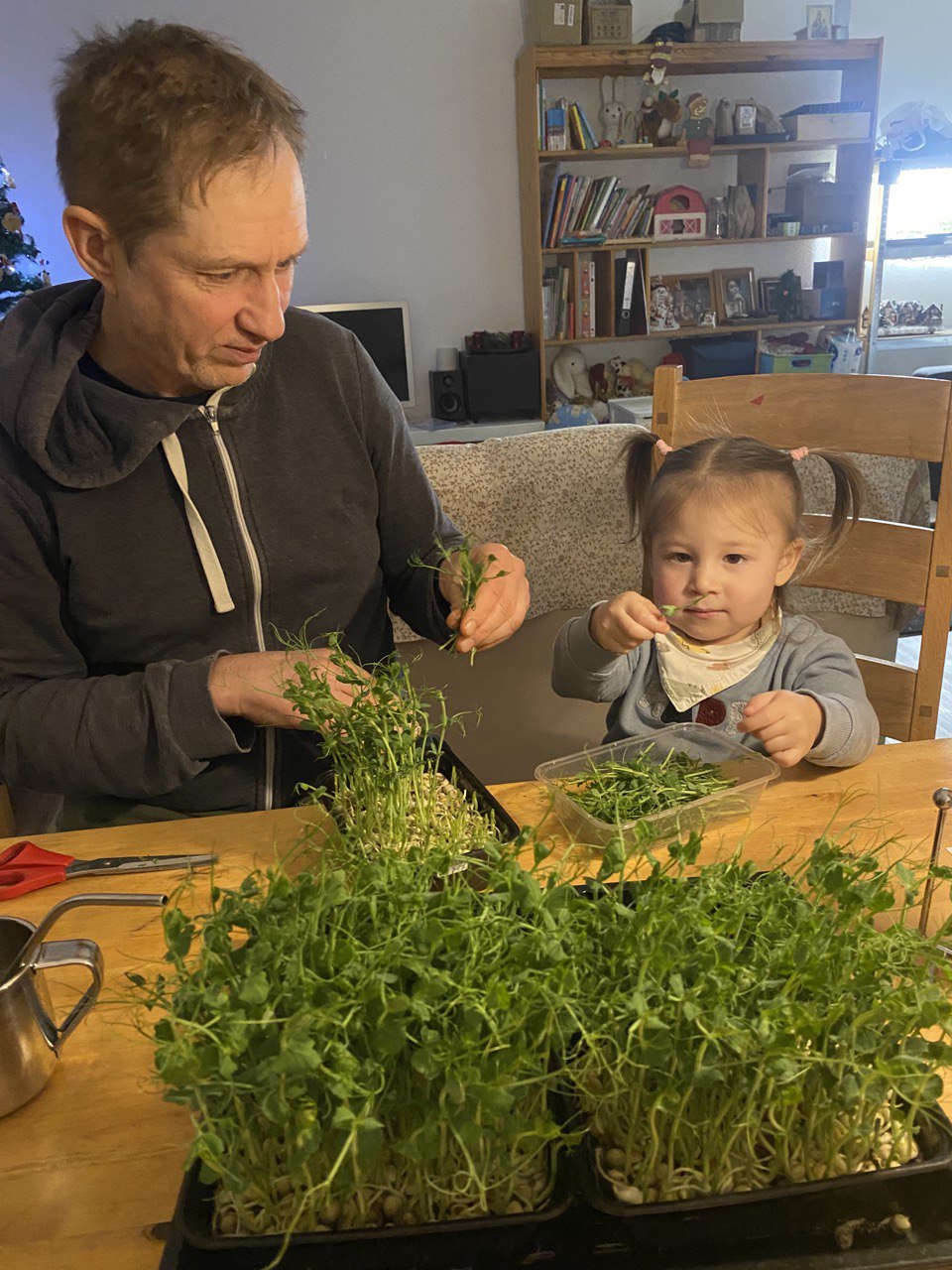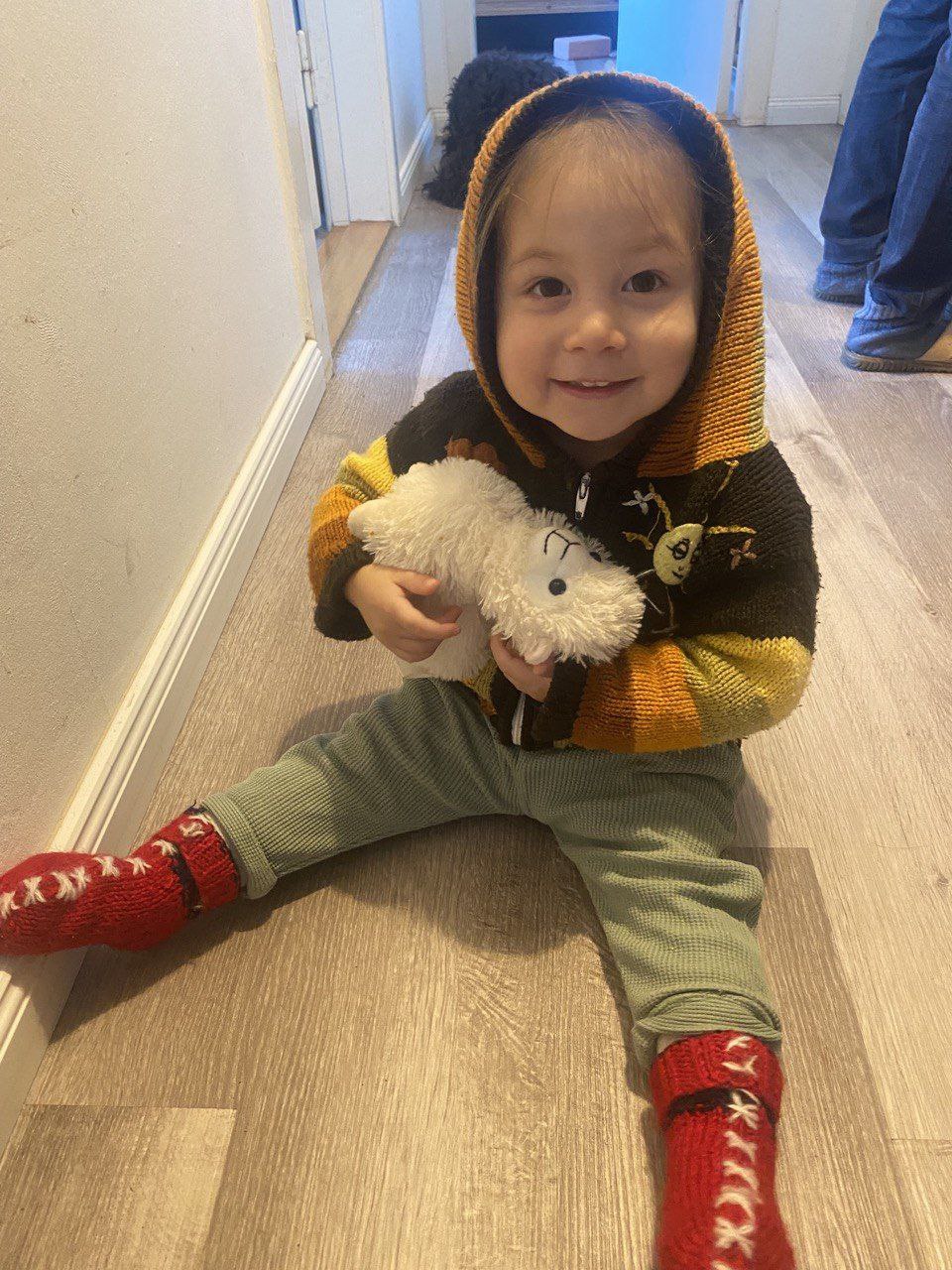 Sunflower gifted by Auntie Victoria, the waffle is homemade by Mom
